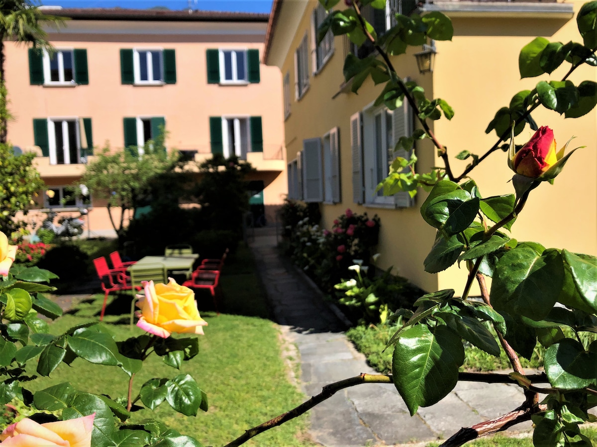 IVANA Apartman Opustite se u ovom mirnom prostoru na centralnoj i svijetloj lokaciji, na pješačkoj udaljenosti od Migrosa, Denera, Coopa, restorana i pekare. 10' hoda od stanice ili 1' od autobuske stanice (Via Sociale) Uključen je natkriveni parking. Dostupno je punjenje električnog automobila. Dvostruki balkon pogodan za doručak ili opuštanje sa pogledom na baštu i planine i jezera. Klima-uređaj u zajedničkom prostoru uz doplatu za 5 dana (upotreba 10 sati)