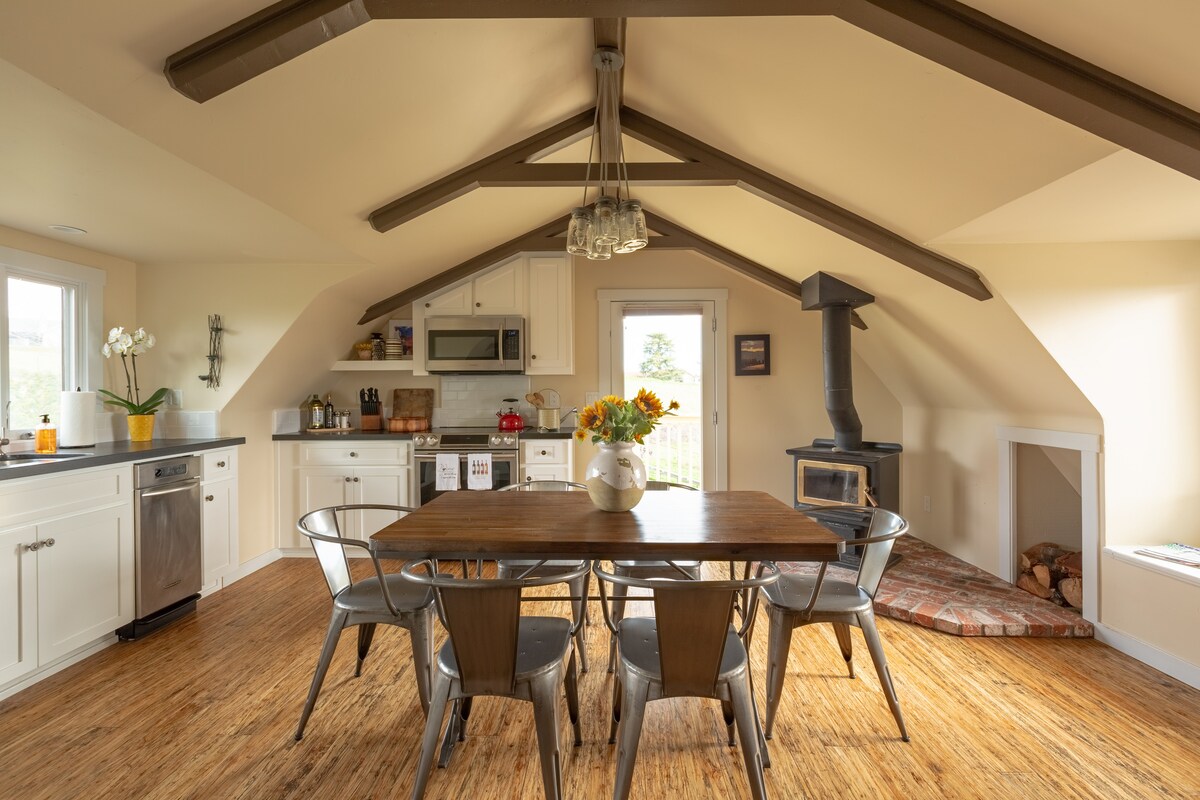 Uživajte u životu u stilu ranča koji se nalazi samo 5 minuta od centra Kambrije. Nalazimo se odmah izvan obalnog pojasa za maglu, tako da kada je u gradu magla, obično imamo savršene temperature i sunce! Iako se smatra „minijaturnom kućom”, vrlo je prostrana sa svim sadržajima, uključujući frižider u punoj veličini, lijep roštilj na plin, besplatno punjenje 2. nivoa i mašinu za pranje i sušenje veša u punoj veličini. Takođe možete da prošetate ili da se odvezete do vrha objekta i uživate u pogledu na okean samo za sebe!