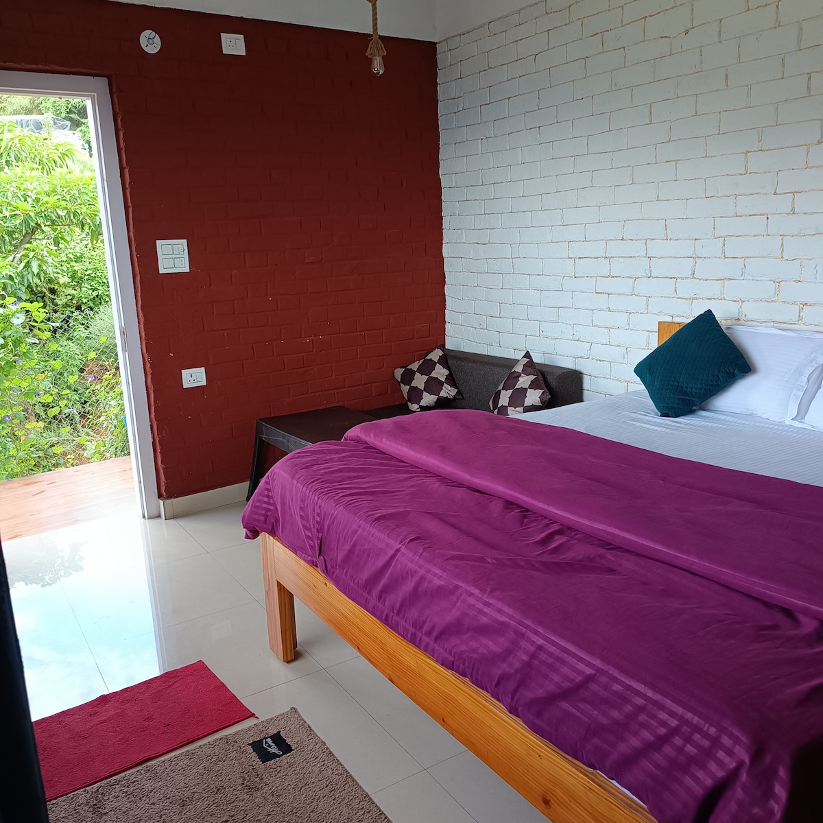 A frame intimacy, balcony sunrise, quiet corners. Made for couples who love slow mornings. Work ready, power ready, phone optional. Raya feels cozy and close. The balcony is the hero here, tea and first light every day. Simple interiors, warm wood, and a clear view set the tone. WiFi is fast, power is backed up, and there is a tidy workspace if you need it. Drive time from Delhi is nine to ten hours. Kathgodam is the nearest rail. Free parking. Best for couples and anniversaries.