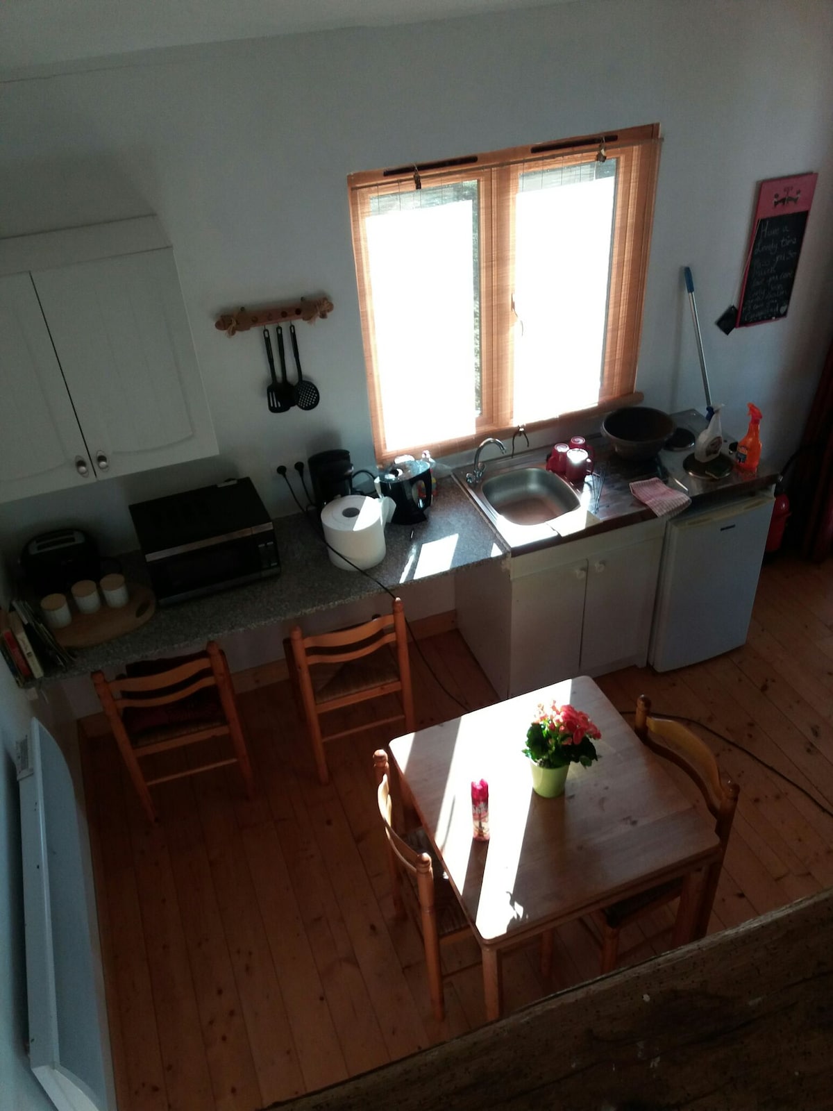 Na privatnom posjedu od više od 3ha, uključujući našu stambenu kuću, kao i malu štalu, planinska kuća od 35 m2 nalazi se direktno na ivici vodene površine od 700 m2 i može da primi do 4 osobe. Sastoji se od tuš-kabine, opremljene kuhinje, trpezarije, spavaće sobe sa bračnim krevetom i mezanina sa dva 90 kreveta. Imaćete ogromnu baštu raspoređenu pored vode i šporet na drva za hladnije večeri.