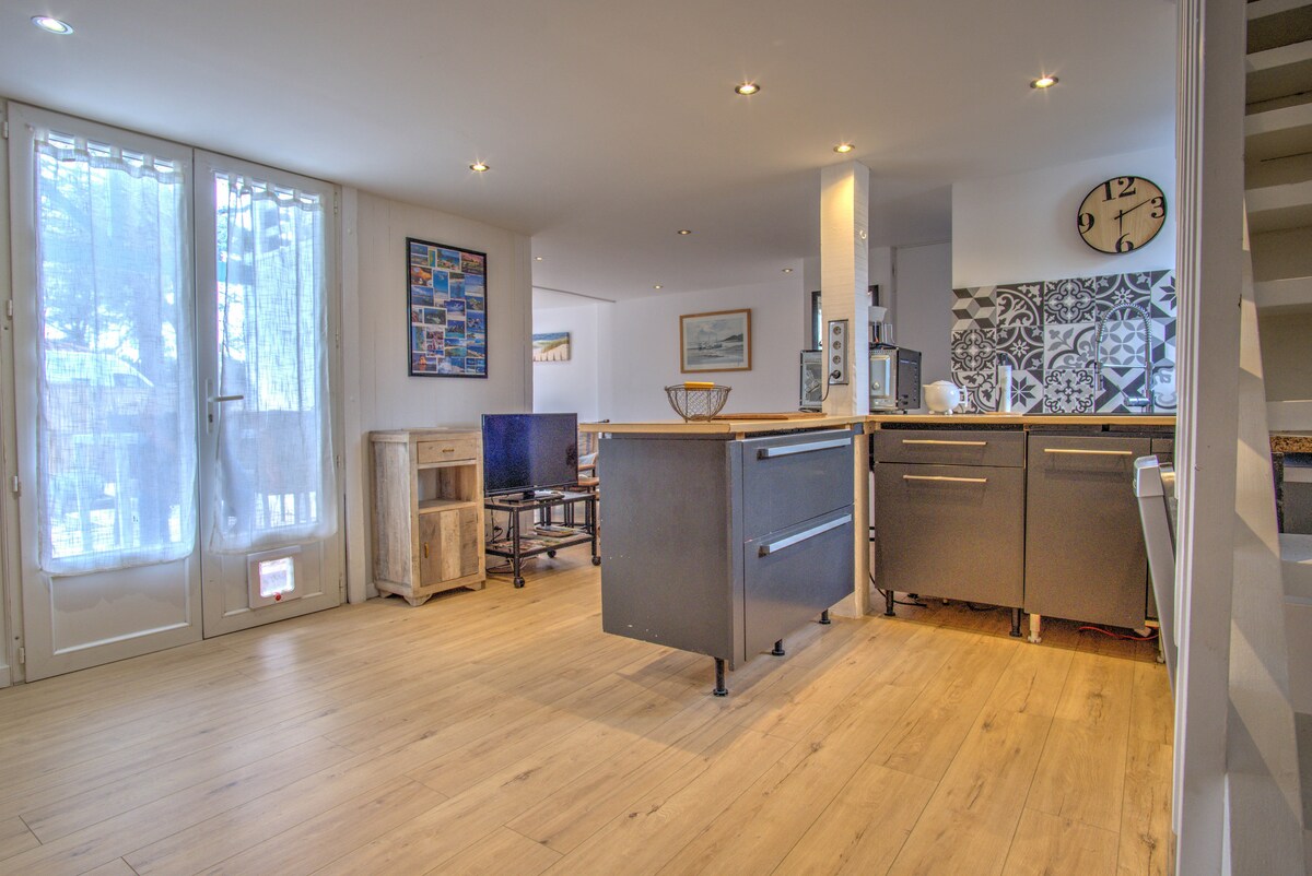 Moderna i veoma svetla planinska kuća u masivnom drvetu koja se sastoji od 3 kupatila i saune. Udaljenost od vile: šumsko zaštićeno područje, pristup plaži udaljen 400 metara, baza za aktivnosti na vodi i biciklističke ture. Udobna atmosfera zagarantovana! Ala Moana „Na putu ka moru“ na Havajima - Uživajte u zvucima talasa iz prostrane bašte, stopala u pesku. - Ch 1: bračni krevet + bračni tuš + XL kada - Ch 2: Bračni krevet + krevetac - Ch 3: Bračni krevet + Krevet za jednu osobu - Mezanin - kauč na razvlačenje