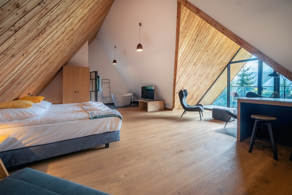 HONAY HOUSE is a cozy and modern cottage with a stunning and unique view of the High Tatra Mountains. Our house is perfectly crafted for everyone who is searching for wild nature, active recreation or just a refuge from the crowded resorts of Podhale. It`s a peaceful location. As a designers we took care of every detail to let you experience a high-quality interior that is extremely natural and warm. Outside the house you can also enjoy wooden chill deck. Welcome to stay on our hill.
