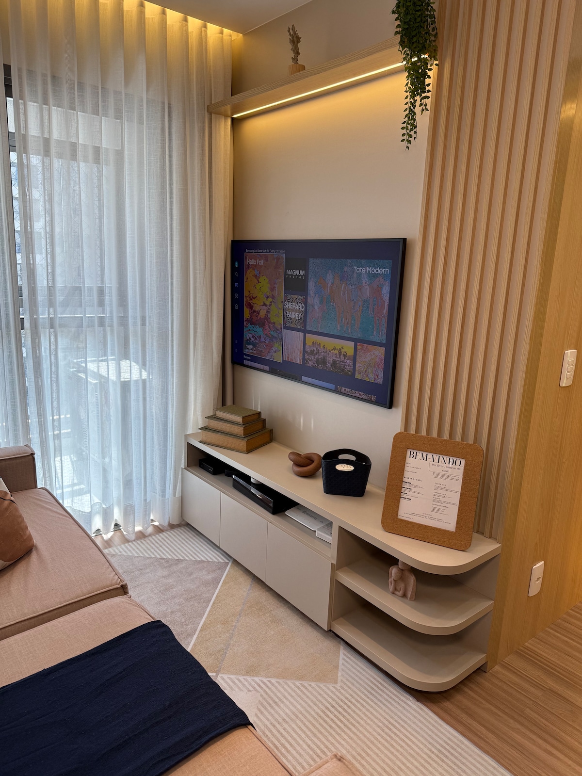 NOVI i MODERAN stan. Nalazi se u srcu GLEBE PALHANO, nedaleko od tržnog centra Aurora, supermarketa, akademije i apoteke. Gleba Palhano se smatra najboljim regionom Londrine. Okolina se sastoji od luksuznih nekretnina. Stan: Klima-uređaj u spavaćoj sobi, Smart TV u dnevnoj sobi, WI-FI, bračni krevet, kauč na razvlačenje, frižider, prečišćivač vode, ploča za kuvanje, električna rerna, sendvič, razni tiganji i komplet pribora za jelo. Posteljina za krevet i kupatilo je već uključena u smještaj.