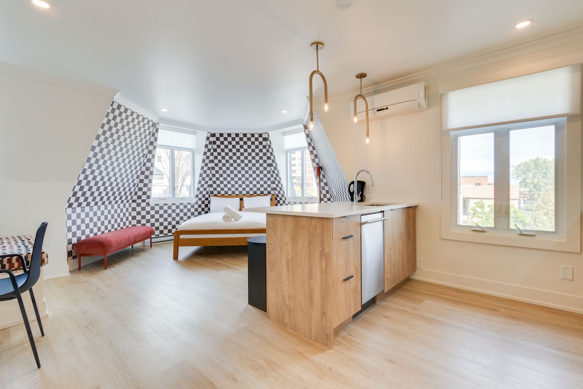 Dobro došli u Hôtel Unique Stays, naš preuređeni šarmantni butik hotel koji se nalazi u srcu dinamične latinske četvrti u Montrealu. Smješten u elegantnoj trospratnoj zgradi, naš hotel nudi intimnu i prefinjenu atmosferu, savršenu za nezaboravan boravak. Inspirisani glamurom doba točionice, naši enterijeri kombinuju starinski šarm, nepretenciozni luksuz i savremeni dizajn, idealan za opuštanje ili slavlje. Jedva čekamo da vam poželimo dobrodošlicu u jedinstveno iskustvo koje smo osmislili.