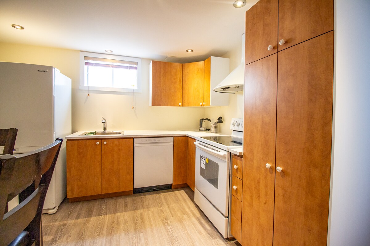 Udoban mali studio u suterenu za jednog ili dva gosta. Nalazi se u mirnom, dobro povezanom području, na samo 3–5 minuta hoda od metro stanice Cartier (narandžasta linija) sa direktnim pristupom centru Montreala za 20–25 minuta. Aerodrom Montreal-Trudo (YUL) je udaljen 25–30 minuta vožnje automobilom. Uključuje Wi-Fi, kompletnu kuhinju, privatno kupatilo, mašinu za pranje/sušenje veša i pametni TV. Savršeno za putnike koji traže udobnost i jednostavan prevoz. Sertifikat CITQ br. 304968.