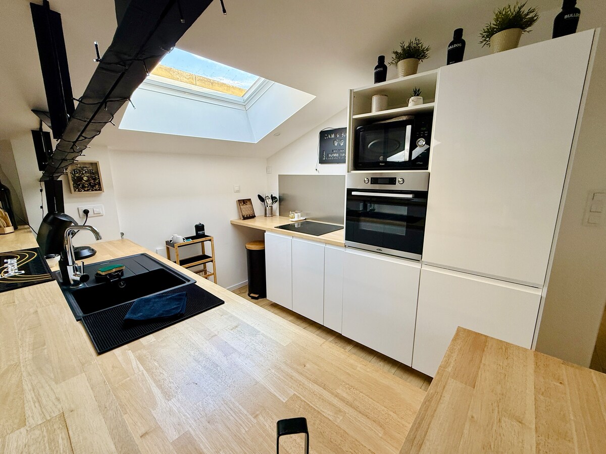 A recently renewed building in the garden of our house, accessible with a direct bus from Lille center. An original 40 m² industrial loft, combining Northern bricks and modernity, very quiet, its access to the garden allows to smoke outside. We are solidarity hosts of the #HostForGood network. The benefit of your reservation finances a local NPO for the homeless. The price is for 1/2 persons who use only one double bed. One person more so 3 persons and/or one bed more costs 15€ more.