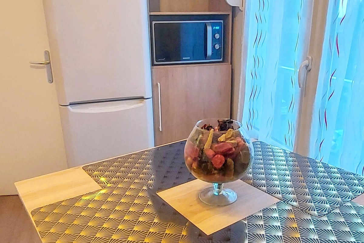 La Maison du Bambou U ovoj kući ćete naći đakuzi za 5 osoba, saunu, opremljenu kuhinju, kupatilo sa tuš kabinom, prostrani dnevni boravak sa TV-om i povezanim zvučnicima u celom apartmanu, zvezdanu spavaću sobu. Biće vam obezbijeđene neophodne toaletne potrepštine, peškiri, ogrtači, japanke. Dok ste u đakuziju, uživaćete u prelijepom zalasku sunca! Imajte na umu da se đakuzi i sauna dodatno naplaćuju. Radujem se što ću vas ugostiti
