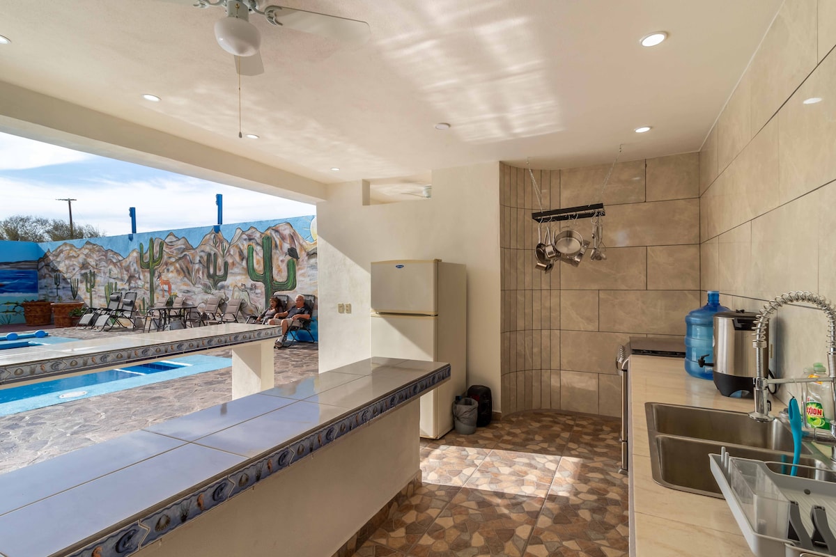 Naša moderna stambena zgrada ima Hi-Speed Wi-Fi i udaljena je samo nekoliko koraka do plaže duž Kortezovog mora. Ovaj dvosobni stan ima dovoljno stambenog prostora za do šest osoba, sa potpuno funkcionalnom kuhinjom. Mirno okruženje prelepih kuća na plaži čini šetnju duž plaže bezbednom i bezbednom, na maloj udaljenosti od palapa na plaži, marine i Malekona. Prošetajte ili vozite bicikle do Plaze (oko 3/4 milje) - pravo niz ulicu Madero.