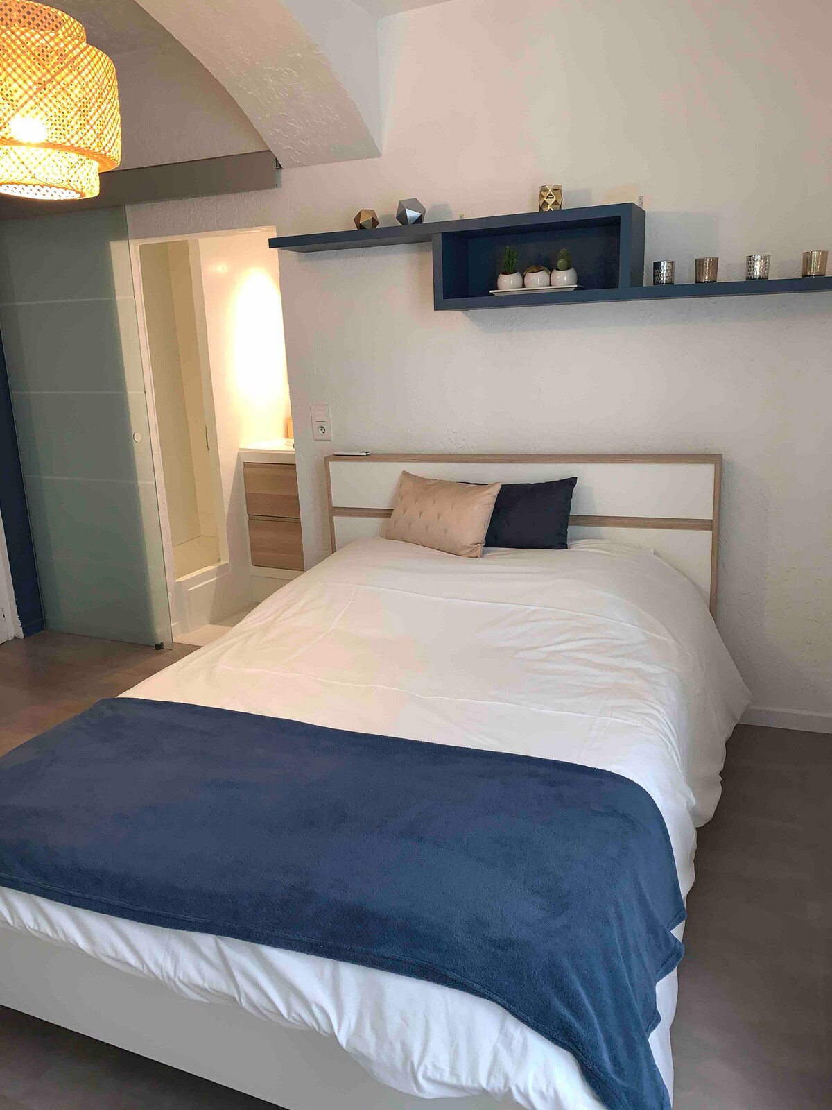 Cijela kuća je dostupna za grupu od 2-5 osoba. Autentična seoska kuća, na spratu, ukusno obnovljena, nalazi se u istorijskom centru gradića Lorgues u blizini i pješke, sve prodavnice. Predivne svijetle količine u svim sobama. Klimatizovan, opremljen svim udobnostima koje su vam potrebne kao kod kuće. 4 spavaće sobe sa pravim krevetima, ostavom i radnim prostorom. Kupatilo sa tušem, kadom i mašinom za pranje veša. Balkon i terasa.