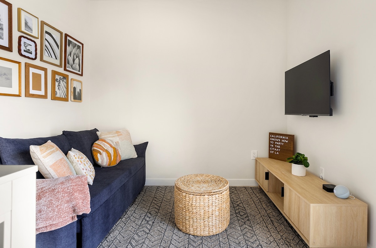 Escape to our cozy, California coastal-inspired one-bedroom, one-bathroom private cottage with a secluded patio and a fully stocked kitchen. Perfectly located for exploring LA’s top attractions like Griffith Park, Universal Studios, the Hollywood Walk of Fame, Hollywood Bowl, LACMA, The Grove, and Dodger Stadium. Enjoy a peaceful home with easy access to major freeways (170, 101, 5, 405), Burbank Airport, and the Van Nuys FlyAway to LAX. Professionally cleaned after every stay for your comfort.