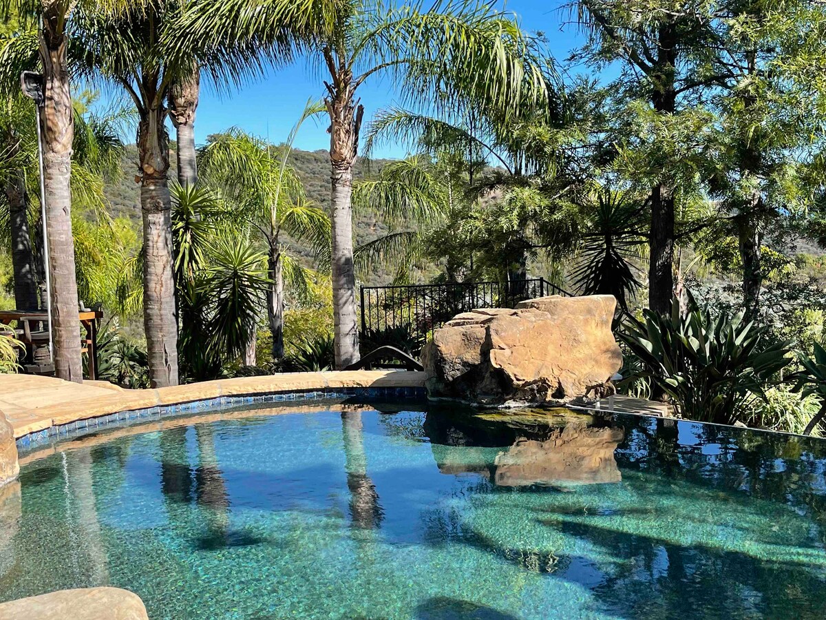10 ⭐️ LOKACIJA: pored Super domaćina/kuhinje i kupatila u stilu Kostarike na otvorenom/pogled na OKEAN iz bazena u zalivu Sta Monika. Izuzetno udobna, udobna prikolica i privatna drvena terasa. Savršen bijeg od bučnog grada! Smještaj sa svjetlom, velikim prozorima i vinilnim podovima. Smješten među bujnim tropskim pejzažima u blizini nevjerovatnog ranča preljevnog bazena, đakuzija i vodopada. Planinarenje, parking, u blizini prodavnica Topanga i Sta Monika i doline. Brzi Wi-Fi. Konji. Potreban je automobil! Kućni ljubimci nisu dozvoljeni! Zabranjeno pušenje!