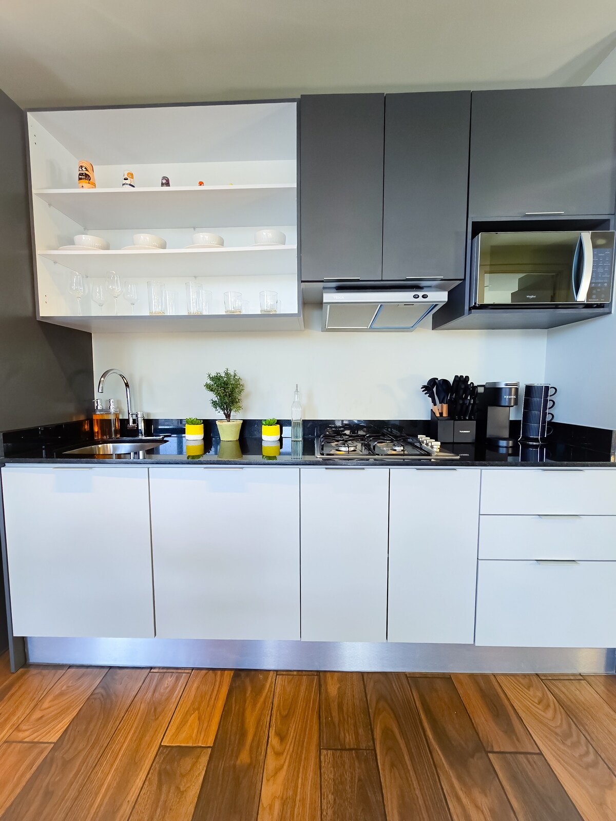Elegantno potkrovlje sa betonskim zidovima, čeličnim gredama i drvenom završnom obradom i botaničkom atmosferom koja oslikava svjež i industrijski stil. U spavaćoj sobi uživajte u ogromnom pogledu na istorijsku ulicu Tihuane. Popnite se na krov i uživajte u koncertu i pogledu na ulice pored ognjišta. Bezbjednost non-stop i pristup samo za kartice. Doživite centralnu lokaciju Tihuane na kojoj su klinike, supermarketi, barovi, restorani i kafići udaljeni manje od 5 minuta hoda.