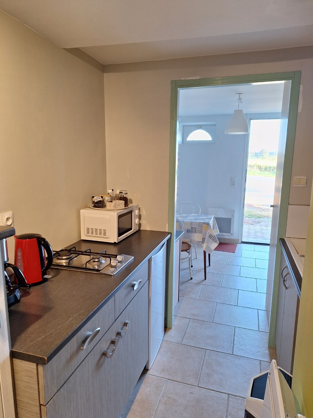 Nudimo dom u novoobnovljenoj, tihoj i prijatnoj staroj štali. Imaćete dnevni boravak (kauč, TV, mikrotalasnu rernu, frižider, čajnik, aparat za kafu Senseo), kupatilo (tuš kabinu, umivaonik, WC šolju) i mezaninsku spavaću sobu (160 x 200 krevet i krevet dimenzija 90 x 190). Nema kuhinje. Možete da iskoristite našu prijatnu baštu. Ovo mesto se nalazi u blizini naše kuće. Udaljen je manje od 40 minuta od 24-SATNOG kruga.