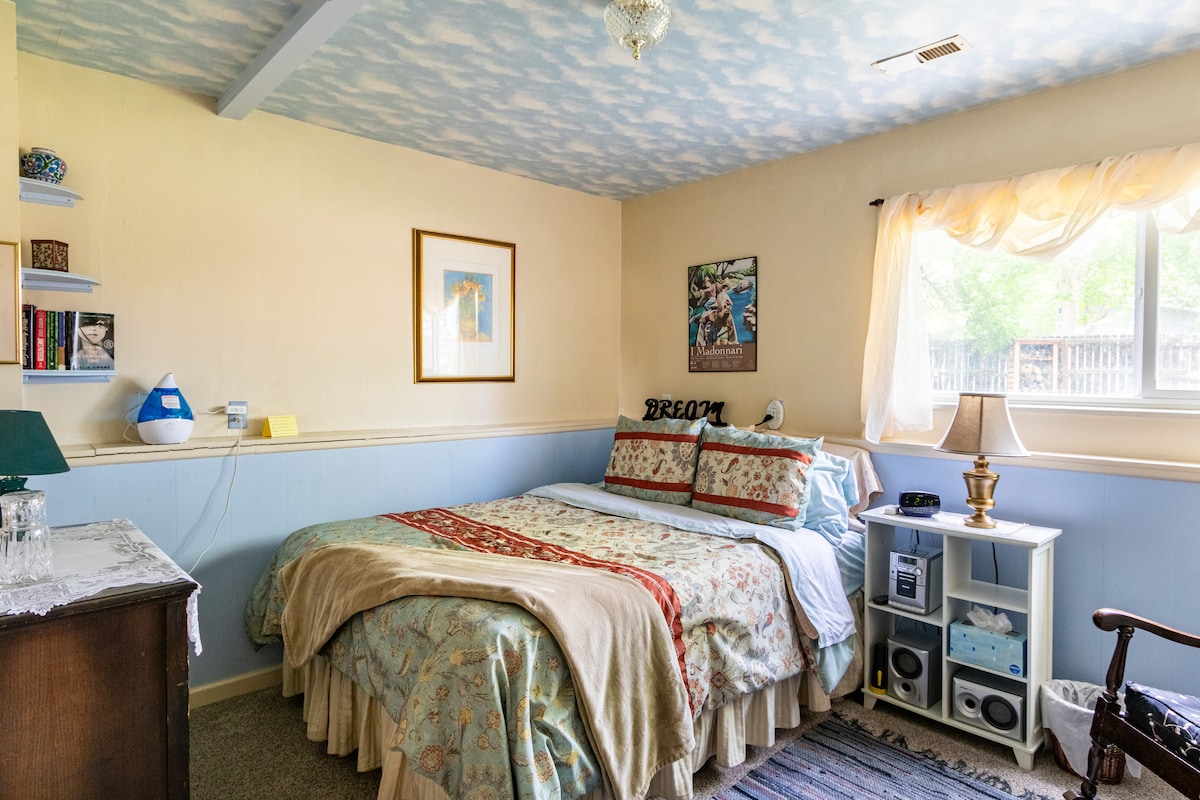 Nezavisni stan u porodičnoj kući. Svi sadržaji. Pogledajte posteljinu ispod drugih detalja. Savršeno za vikend, produženo poslovno putovanje, porodični odmor, bilo koja druga prilika. Nema kućnih ljubimaca, osim životinja za pomoć čoveku. Poseban ulaz u trijem, mnogo svjetla, grijanje i klima-uređaj, potpuno kupatilo, čajna kuhinja, frižider, posebna mašina za pranje/sušenje veša, veliki ormar, brzi Wi-Fi i žičani lan, 4K Roku TV, radni sto. Evropski domaćini su putovali u 50 okruga. Gosti iz bilo koje pozadine su dobrodošli!