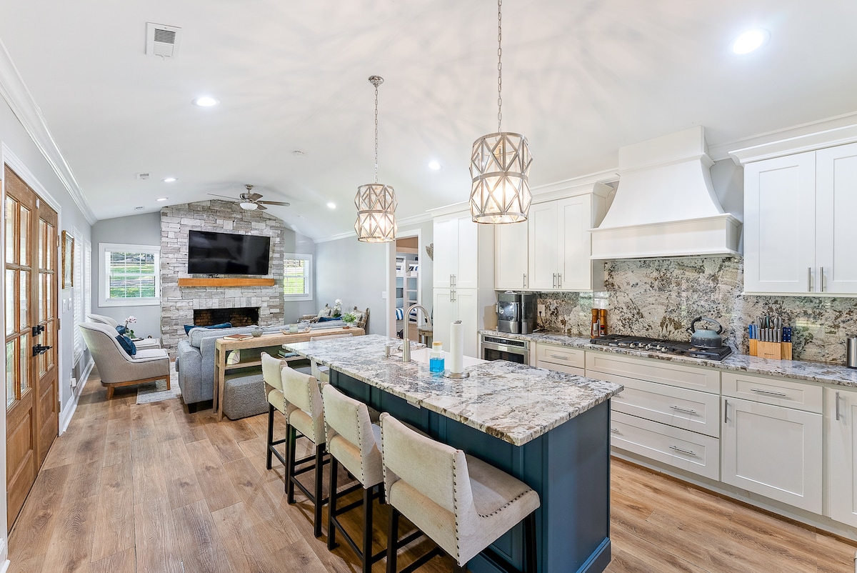 Smeštena na drveću, Skrivena seoska kuća Pajns nalazi se u podnožju Velikih smouki planina, samo 10 minuta od centra Merivila. Nalazi se 20 minuta od aerodroma, 15 minuta od Futhils Pkvija, 40 minuta od zaliva Kejdes i slikovite vožnje od Gatlinburga , to je savršeno mesto za miran odmor. Ovaj novoizgrađeni dom je ispunjen modernim stilom i šarmom. Elegantne tri spavaće sobe, elegantni dnevni boravci, kuhinja i terasa pružaju opuštajuće odredište.