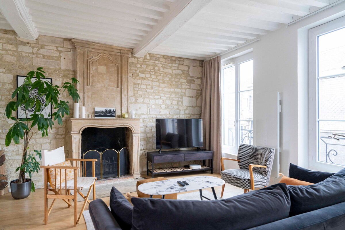 Au rez-de-chaussée d'une bâtisse du XVe siècle classée monument historique, ce 2 pièces de 36 m2 entièrement rénové peut accueillir jusqu’à 4 voyageurs. Si vous aimez le charme de l’ancien, ce lieu est fait pour vous. À 100m de l’abbaye aux dames, dans une petite rue calme, l'hypercentre est à moins de 10 mn à pied : quartier du Vaugueux, port, château, ... Le stationnement est gratuit dans le quartier. Nous habitons à côté et pourrons facilement vous venir en aide si besoin.
