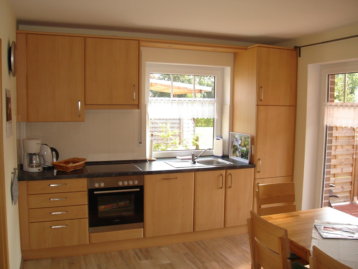 Kuća za odmor na selu se proširila sa pažnjom na detalje (56 m2), pogled na polja, pašnjake i šumu - nema prazničnog seoskog geta ;-) Terasa od 25 kvadratnih metara zapadno sa spektakularnim zalascima sunca, alternativno udoban kamin i brz Wi-Fi za snimanje vremena 2 min. do šume, idealno za pse, šetnje šumom ili brdski biciklizam Za decu: igralište, bazen i zoološki vrt su dostupni u roku od 5 minuta Sve u svemu: Bez dodatnih troškova za pse, dodatne osobe (najviše 4), peškire ili posteljinu