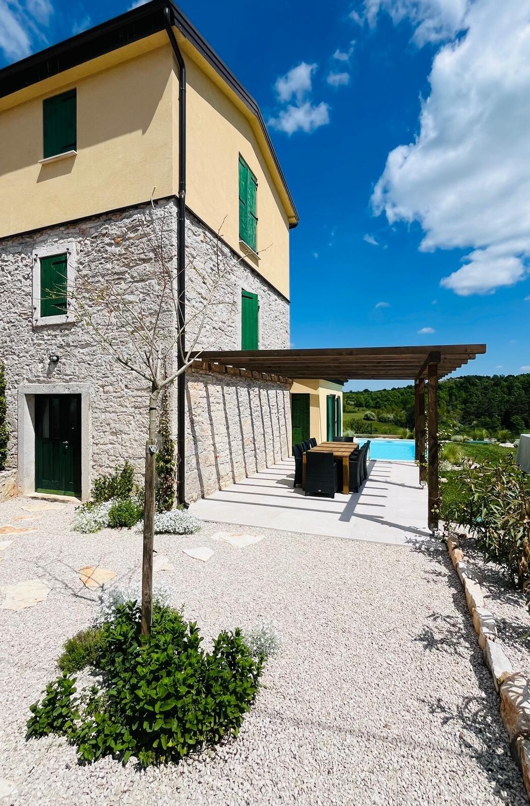 Mirni ambijent okružen prirodom 5 km od mora. Kamena kuća sa nameštajem od hrasta na 3 sprata, sa velikim otvorenim prostorima. Sa prelepim pogledom na more i Alpe. U neposrednoj blizini, vlasnici imaju proizvodnju sira, tako da se različiti autohtoni sirevi mogu degustirati. Takođe se na obližnjim livadama mogu videti ovce na ispaši. Udaljenost od grada garantuje mir i slobodu. Idealno za porodice, bicikliste i sve one koji uživaju u prirodi. Gosti imaju 30% popusta na ulaz u akvapark.