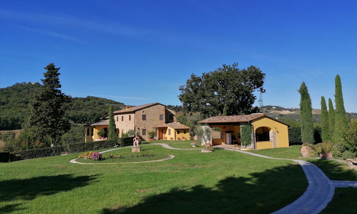 Predivan deo seoske kuće uronjen u Kjanti sa prelepim bazenom, okružen vinogradima i maslinama, savršeno opremljen velikom baštom i parking mestima. Nalazi se 20 minuta od Firence, 40 minuta od Sijene i 50 minuta od Pise, za nekoliko minuta možete stići do Certalda (rodno mesto Bokakija) i Vinči (rodno mesto Leonarda Da Vinčija). Kuća je na pola puta između Montespertolija i San Kazisana (7 km).