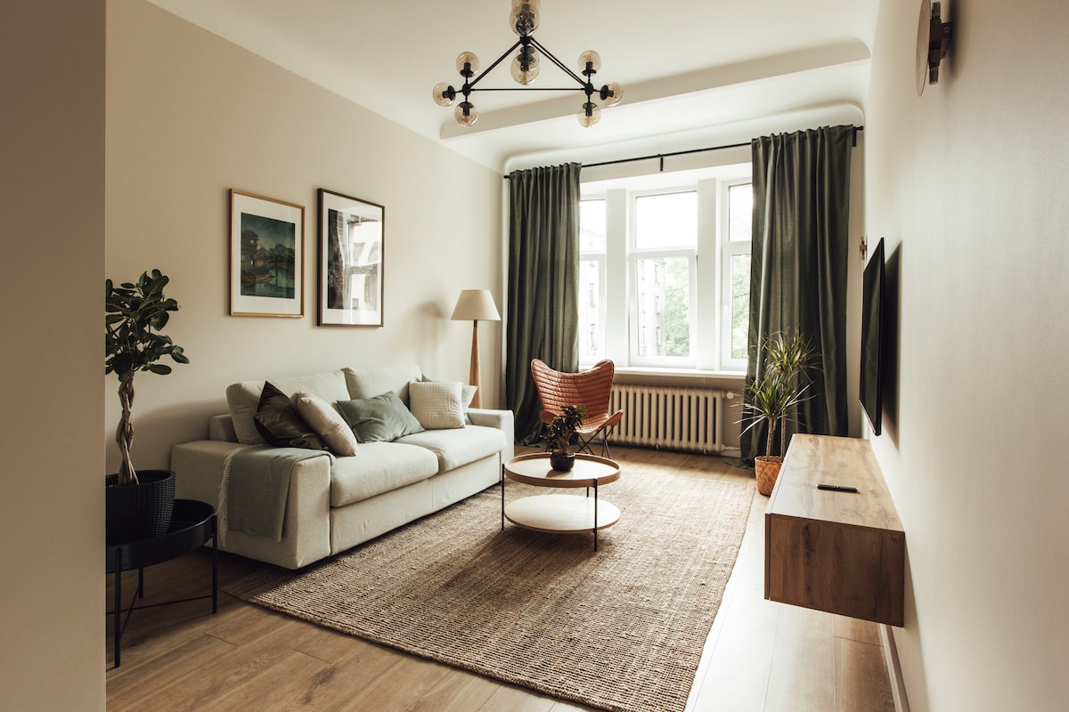 Newly renovated, cozy 2-Bedroom Apartment in the Historic Center of Riga. High-speed internet. Very quiet street. Just a 12-minute walk to the Central Railway Station and 15 minutes to Old Riga. Avotu Street (translated as “spring water”) is well known for its many wedding shops. Free parking is available in the backyard. Please note: gatherings and parties are not allowed. We’re truly grateful for every stay — your support helps us continue renovating our 19th-century historic building 🙏♥️