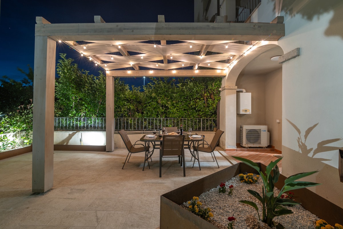 Svetao i udoban nezavisni stan na prvom spratu elegantne poluspojene kuće sa baštom na korak od svih usluga. Samo 4 km od istorijskog centra i na 10 minuta od najbližih plaža, to će biti idealno mesto za uživanje u kvalitetnom odmoru opuštanja i udobnosti Kuća ima dve veličanstvene spavaće sobe, 1 kupatilo, dnevnu sobu u kuhinji i veliku terasu od 120 kvadratnih metara opremljenu stolom, foteljama, ležaljkama za sunčanje i opremljena je roštiljem i solarnim tušem