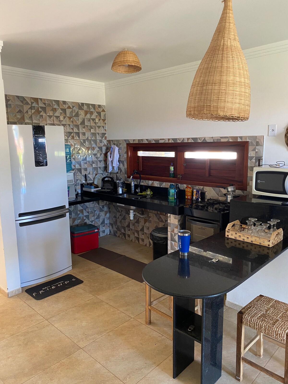 Zabavite se sa cijelom porodicom u ovom elegantnom smještaju. KUĆA NA PLAŽI Coqueiro. Kuća udaljena 300 metara od morske obale, na velikoj parceli. Naš vanjski prostor pruža savršene trenutke interakcije sa prekrasnim pogledom na zalazak sunca u odabranom miru vaše grupe. Imamo gornji balkon sa pogledom na more, donji balkon sa visećim ležaljkama i trpezarijskim stolom, gurmanski prostor i roštilj. Kuća takođe ima potpuno opremljenu kuhinju i sobu sa televizorom. Optički Wi-Fi. Čekamo vas!