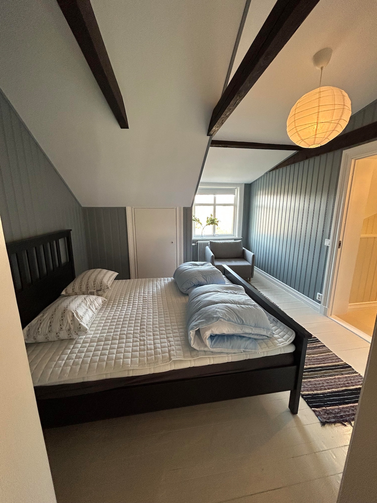 Lidköping central. Privatna kuća. Spavaća soba s bračnim krevetom