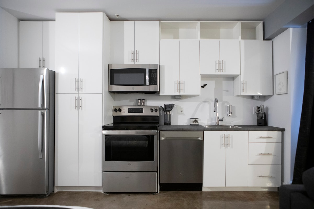 Smješten u srcu centra Volfvila, apartman 201 je prostrana jednosobna soba koja se savršeno nalazi da doživi Volfvil - sa pogledom zrelim za ljude koji gledaju. Naš grad je izuzetno pogodan za pješačenje i pun živosti. Sa kompletnom kuhinjom, glavom za tuširanje sa padavinama, pametnim TV-om od 55", udobnim namještajem, mašinom za pranje/sušenje veša, velikim prozorima, poželećete da nikada ne morate da odlazite! Dok je apartman na drugom spratu, ne brinite jer imamo lift za dodatnu udobnost tokom vaših putovanja