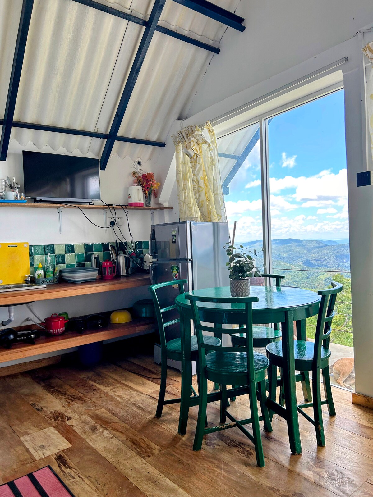 Privatna brvnara u obliku slova A iznad maglovite šume u Narangali – jednom od najdramatičnijih planinskih predjela Šri Lanke. Trouglasti prozor od poda do plafona okrenut prema dolini. Plava francuska vrata koja vode na drvenu terasu. Viseća ležaljka na gornjem potkrovlju Ležite u njoj i gledajte kako se oblaci kreću kroz dolinu ispod vas Kuhinja, tuš sa toplom vodom, brza Wi-Fi mreža, poseban prostor za rad sa pogledom na planine Idealno za parove i samce koji traže tišinu, prirodu i potpunu privatnost. Pešačka staza Narangala.