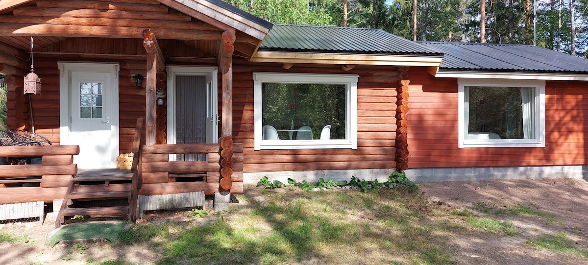 Ručno izrezbarena brvnara, privatna peščana plaža i pristanište. 15 m od obale jezera Saimaa. Vikendica je topla i zimi. Kamin, toplotna pumpa. Podno grejanje u hodniku, toaletu, sauni. Kuhinja u sobi. Sauna je tradicionalna, sa prostorom za pranje u sauni. Peć za saunu na drva sa sopstvenim bojlerom. Nema tuša. Pešačka staza Orrain i obližnji prelepi vodopadi Partakoski i Karnakoski. Wi-Fi 100 mbps. Sopstveni bunar.