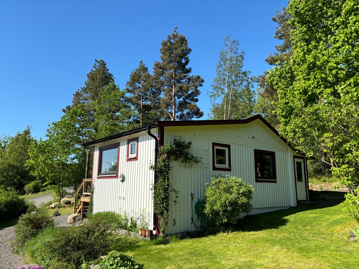 Udobna koliba koja se nalazi tik uz obalu sa velikom terasom okrenutom prema jugu. Tokom letnjih meseci na raspolaganju su čamac za veslanje i kanu na sopstvenom pristaništu, kao i roštilj na ugalj i baštenski nameštaj. U vikendici postoji brz WiFi koji doseže sve do pristaništa. Kuća ima dve udobne spavaće sobe i potkrovlje gde se možete družiti uveče. Mala kuhinja je potpuno opremljena sa većinom stvari koje vam mogu zatrebati tokom odmora, na primer mikromačina za pranje sudova i veliki frižider i zamrzivač.