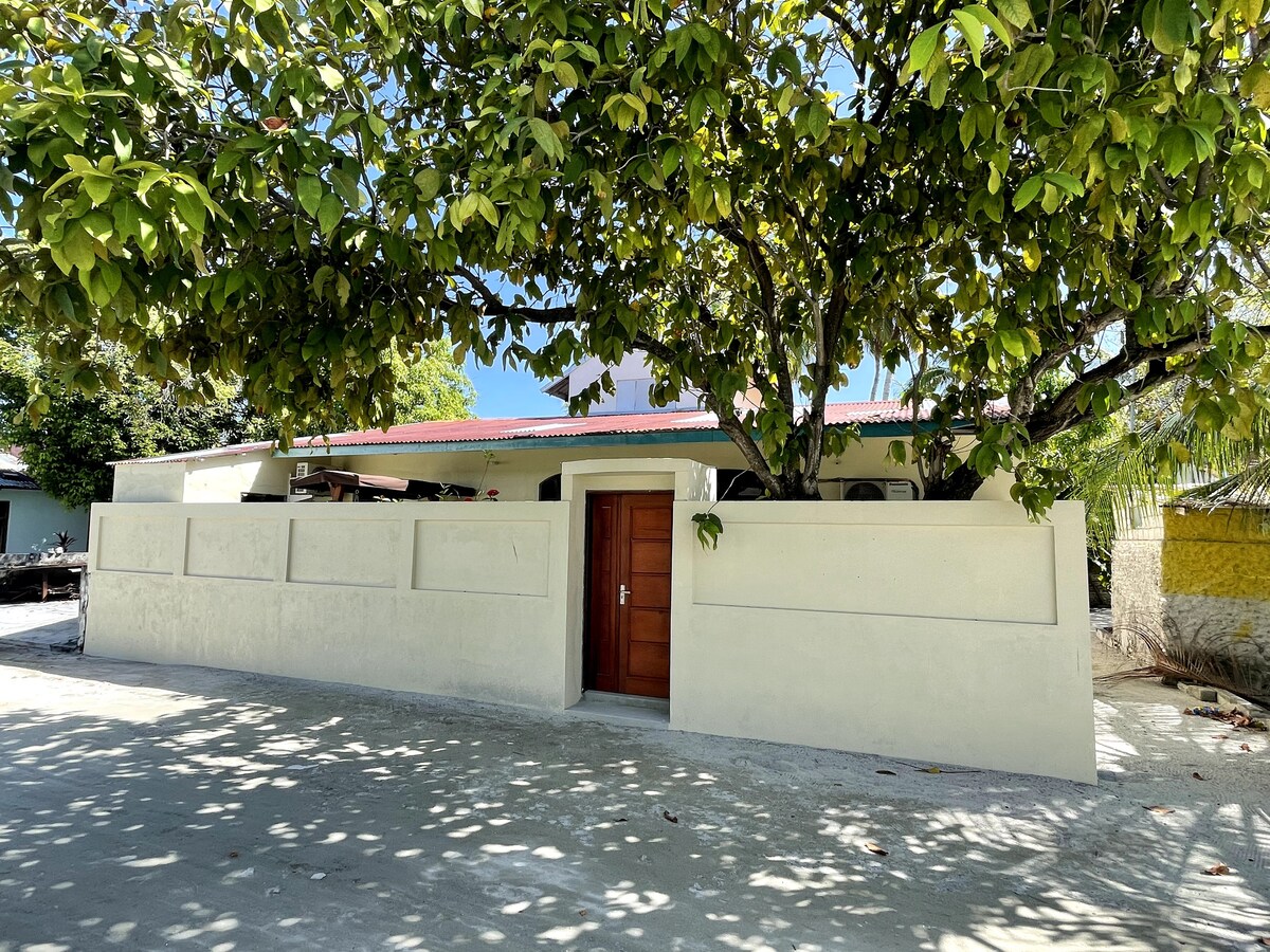 Uživajte u boravku u ovoj udobnoj kući sa 2 spavaće sobe koja se nalazi na mirnom tropskom ostrvu na Maldivima. Samo nekoliko minuta hoda do plaže, prodavnica i lokalnih kafića. Savršeno za porodice, parove ili prijatelje koji traže opuštajući odmor na ostrvu.