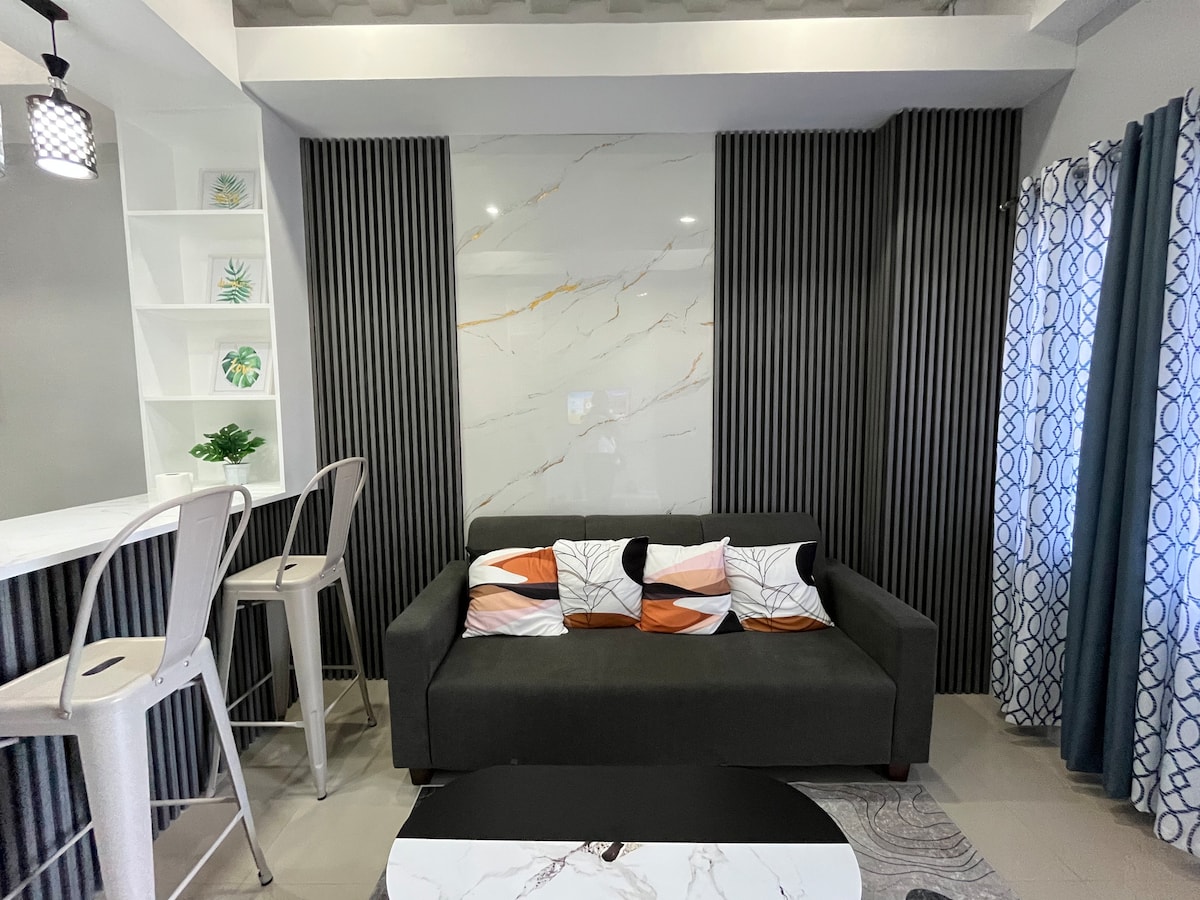HOTEL-STANDARD. Rated 5-Star by guests Provides COMPLETE PRIVACY to AirBnB clients, comfortable & cozy. Self-checkin convenience The suite is a studio-type all-in. It has own bedroom with backlighted bed board, private bathroom with hot and cold shower, full kitchen (gas stove, microwave, refrigerator, rice cooker, coffeemaker, water kettle, teapot, cooking pans and wares, salt, pepper, cooking oil), living/dining area with coffee table to relax while watching smart HDTV, and a work station.