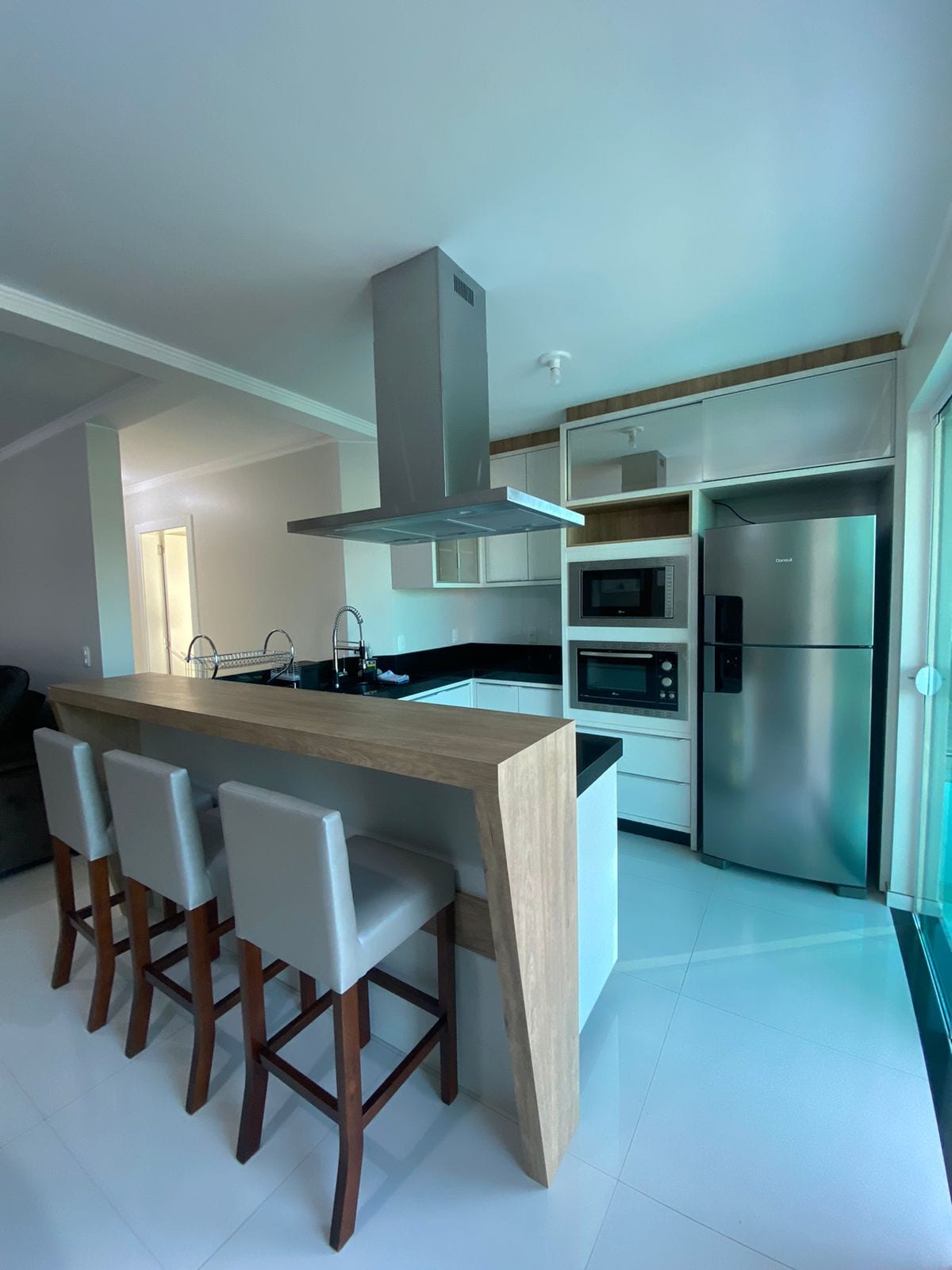 Odličan stan na petom spratu zgrade, potpuno namješten, sa dvije spavaće sobe, jednim kupatilom, balkonom sa roštiljem, dnevnim boravkom, kuhinjom i parking mjestom. Zgrada ima lift. Odlična lokacija na glavnoj aveniji Piratuba-SC, sa približnom udaljenošću od 1000 metara od Parque de Águas Termais (15-20 minuta hoda). Pored restorana, Lanchonetes, Supermercados, apoteka, pekara, između ostalog. Pogled na riblju reku i banku Sicredi u prizemlju zgrade.