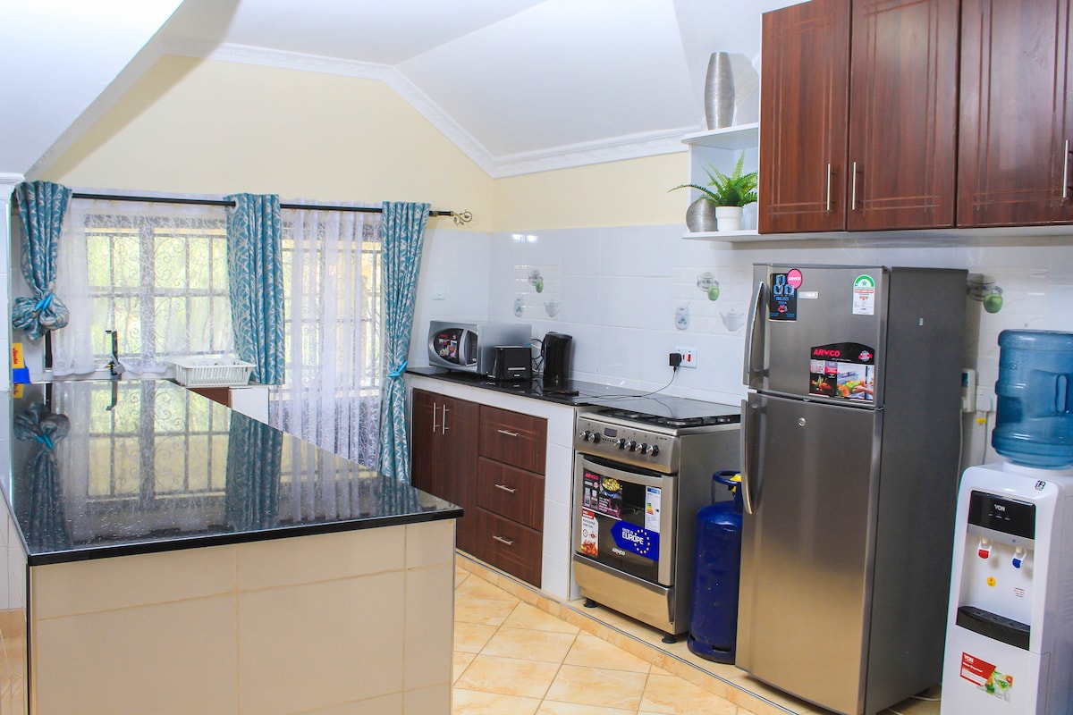 Uživajte u udobnom dvosobnom stanu uz autoput Tika uz Netfliks, brz Wi-Fi, potpuno opremljenu kuhinju i opuštajući pogled s balkona. Nalazi se u ograđenoj zajednici sa 24/7 obezbeđenjem i parkingom, na samo nekoliko koraka od tržnog centra Spur, tržnog centra Nord, Tatu City-ja, Kamakis Nyama Choma i Ashaki Gardens-a – udobnost i praktičnost u jednom boravku!