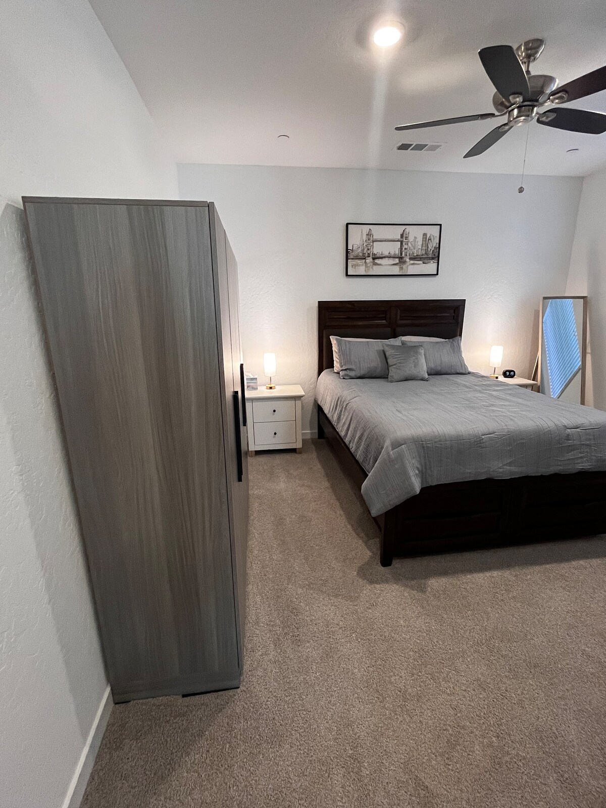 Dobro došli u naš zapanjujući Airbnb u glavnom severoistočnom Fresnu! Ovaj savremeni skriveni dragulj nudi stil i udobnost. Odmorite se na hibridnom dušeku King memorijske pene ili dušeku od memorijske pene kraljice. Uživajte u potpuno opremljenoj dizajnerskoj kuhinji, pametnim televizorima i besplatnom Wi-Fi mreži. Želite li da radite od kuće? Nema problema! Pronađite kancelarijski prostor ovde. Restorani/ pijace u krugu od milje. Vudvord Park, udaljen samo 5 minuta. Nacionalni park Yosemite, udaljen 1,15 sati