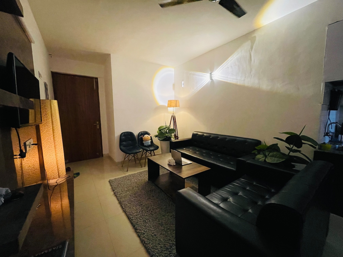 Udoban, minimalistički dvosoban stan u ograđenom naselju sa sopstvenom pijacom i prodavnicom pića u blizini. Jedna soba ima kupatilo u sklopu. Uživajte u Wi-Fi mreži, TV-u, klima-uređaju, fen za kosu i potpuno opremljenoj kuhinji. Zomato i Blinkit dostavljaju do vrata. Jednostavna samostalna prijava uz bezbjedan PIN. Udoban, miran prostor savršen za posao ili opuštajući odmor. 🌿💛