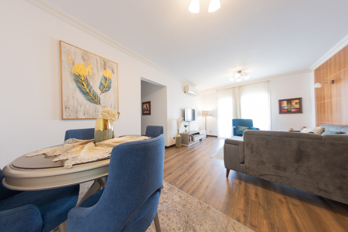 ★ Dobro došli u naše omiljeno utočište za goste u srcu Šeratona Heliopolisa! ★ Ovaj besprekorni, potpuno renovirani 3BR stan idealan je za porodice ili poslovne putnike. Samo 10 minuta od aerodroma Cai, ima potpuno opremljenu kuhinju, elegantan dnevni boravak sa satelitskom televizijom i 1,5 kupatilo za udobnost. Prošetajte do živopisnih prodavnica i restorana ili lako pristupite glavnim autoputevima. Čeka vas spokojna i praktična baza u Kairu.