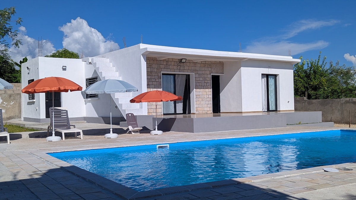 Ovaj elegantni smještaj je savršen za par ili četvoročlanu porodicu, u zelenom okruženju nekoliko minuta od plaže Ambaro, Nosi Be. Nudi 1 bračni krevet i 2 mala kreveta, veliku terasu, privatni bazen, bezbedan parking i sve moderne pogodnosti: opremljenu kuhinju, besplatan Wi-Fi i Canal+. Uživajte u apsolutnom miru za opuštajući odmor, u sigurnom i prijateljskom prostoru, savršenom za opuštanje i stvaranje dragocjenih porodičnih uspomena.