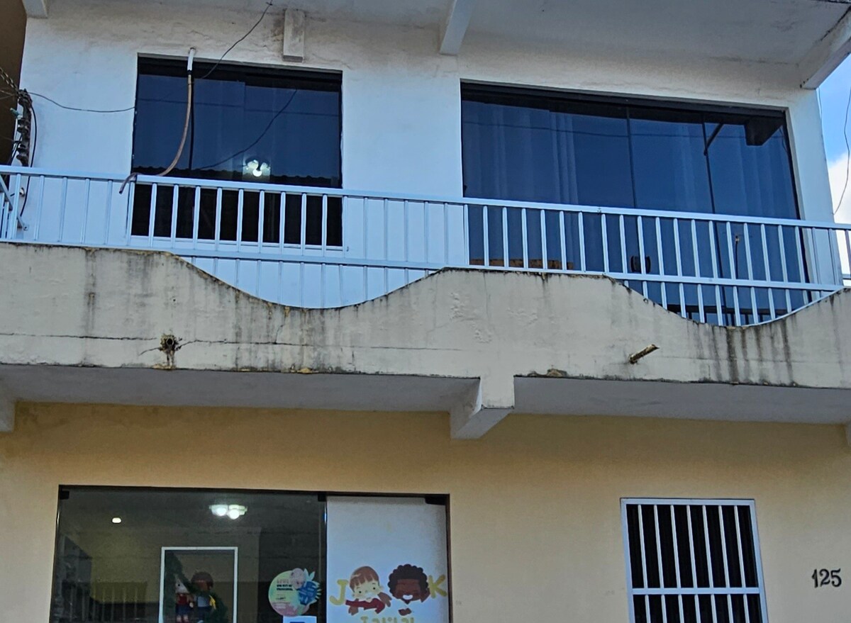 Jednostavna, udobna, čista i funkcionalna kuća, idealna za one koji traže mir, praktičnost i dobru vrednost za novac. Objekat može da primi do 6 osoba, a sadrži: • 1 spavaća soba s bračnim krevetom; • 1 spavaća soba sa krevetom za jednu osobu i bračnim krevetom (+ 3 ventilatora); • Dnevna soba sa kaučem i TV-om; • Opremljena kuhinja; • Kupatilo; • Garaža u sklopu objekta. 📍 Nalazi se neposredno prije ulaza u Madre de Deus, pored državne škole Ana Junqueira Aires. (2 minuta vožnje do ulaza u Madre)