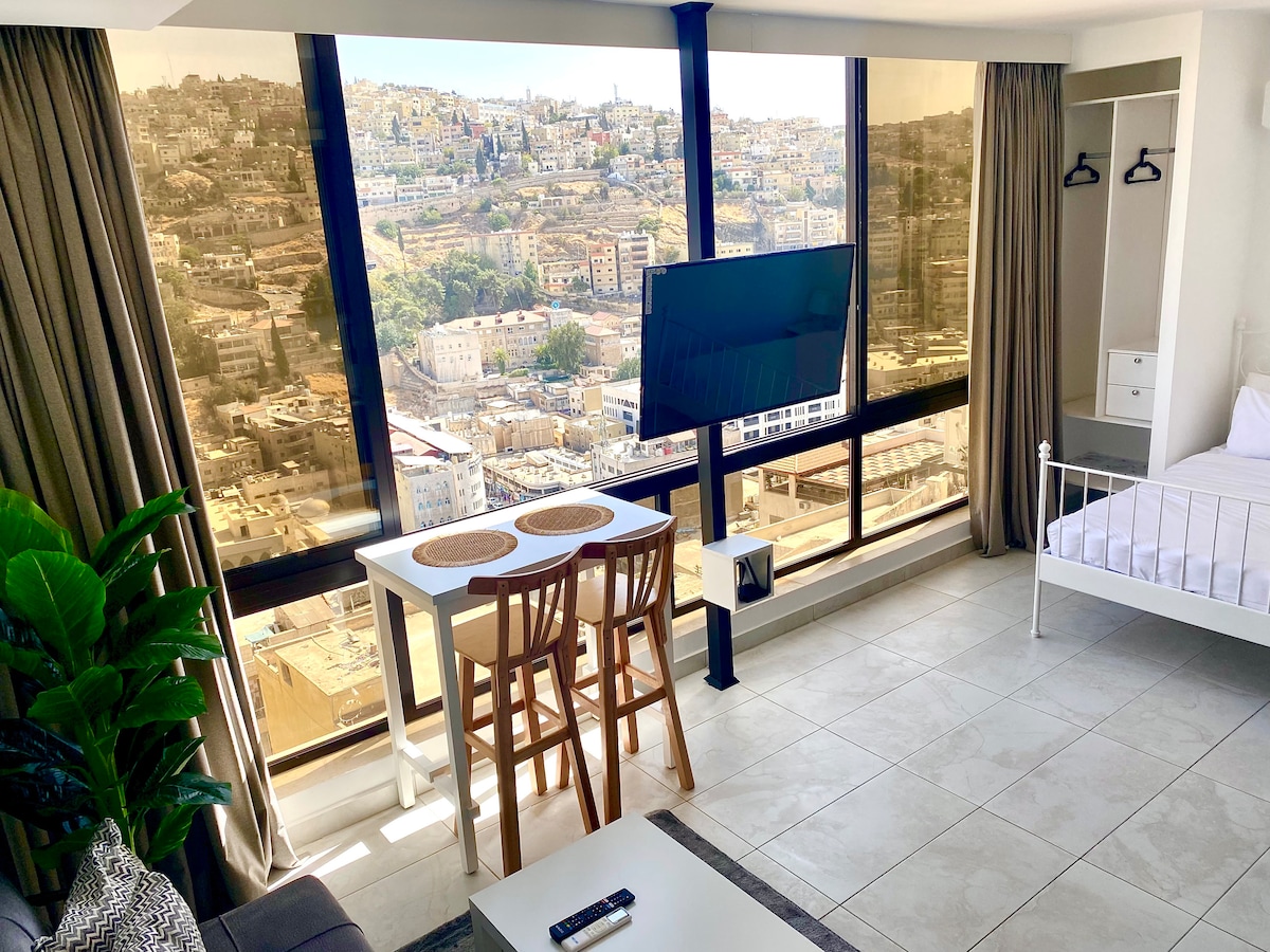 Ako niste mogli da pronađete dostupnu sobu, posetite moj profil za druge studije.“ *Imajte na umu da je bračni list obavezan za lokalne jordanske parove* Nađite se u srcu jednog od najšarmantnijih delova grada u prelepoj ulici Rejnbou - centru grada. Ne samo da se ovaj luksuzni studio nalazi u centru, nedavna renovacija znači da je jednako elegantna kao i okolina.