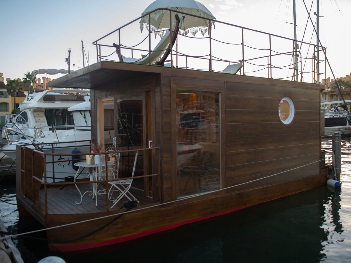Naša kuća na vodi ima moderan butik stil. Potpuno optimizovan i minimalistički prostor. Predivna terasa sa stolom i stolicama s pogledom na okean i stenu Gibraltara. Nalazi se u Kadizu u Španiji, u luci La Alcaidesa. Opuštena atmosfera sa mnogo prirode sa mnogo prirode, u gradu i sa udobnošću koja vam je potrebna za odmor Ako tražite drugi doživljaj, tu je! Dozvoljeni su kućni ljubimci. Dodatnih 15 EUR po kućnom ljubimcu (prihvataju se najviše 2 EUR)