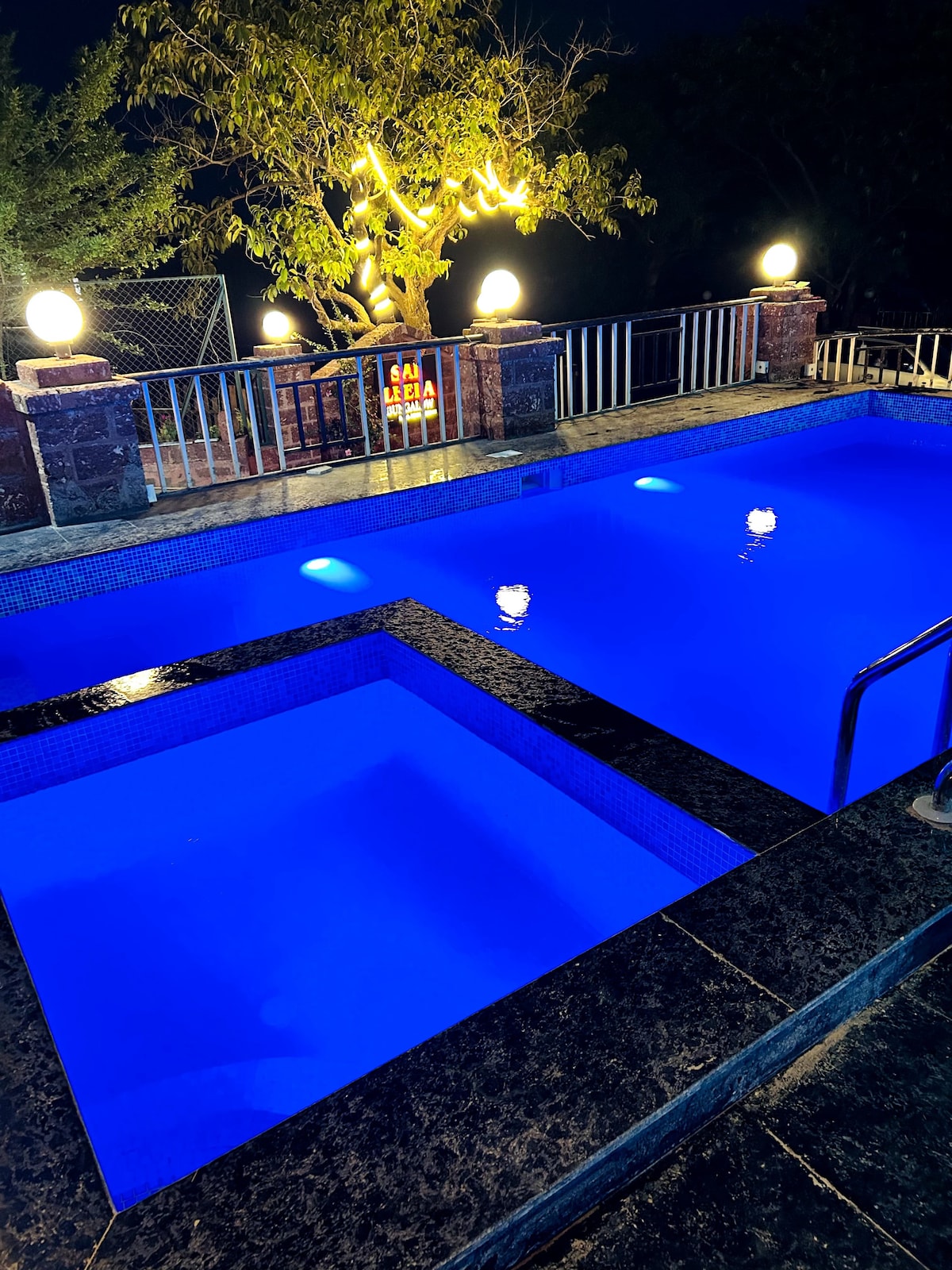 • 🛏️ Izuzetno luksuzna vila 7BHK u Pančganiju • 🛁 Glavna spavaća soba sa privatnom kadom • 🔥 Potopljena sjedala s prostorom za logorsku vatru • 🏊♂️ Ogroman bazen s ležaljkama za sunčanje • 🎉 Ogromna terasa savršena za organizovanje zabava • 🕹️ Igraonica sa stonim tenisom i Karromom • 👥 Idealno za 14 gostiju (dozvoljeni su dodatni gosti) • ✨ Savršeno za grupne odmore, rođendane i proslave • 🏡 Upravlja Jumbo Holidayz