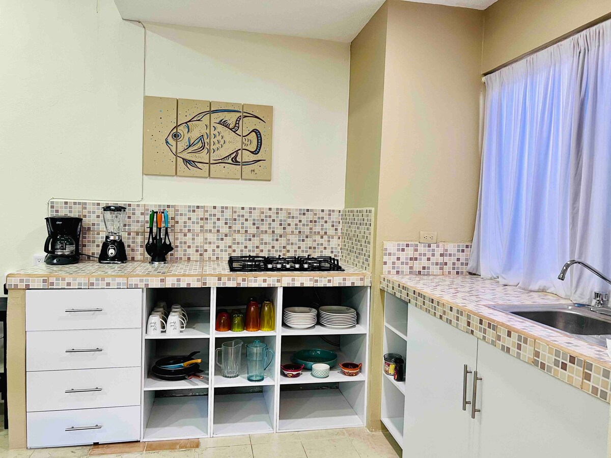 Vrlo široko, sa svime što vam je potrebno kao u sopstvenom domu, na uglu je more, ali ne možete da prođete.,(kroz mangrove), moraćete da prošetate 5 blokova da biste došli do šetališta, ima dve prodavnice u suprotnom konjištu i prodavnicu Barudi udaljenu 3 bloka, ulica „Barrio “ je veoma široka i tiha kuća., picerija, restorani i svaki dan odmah iza ugla od kuće, model sa cevicheom i još nešto drugo .