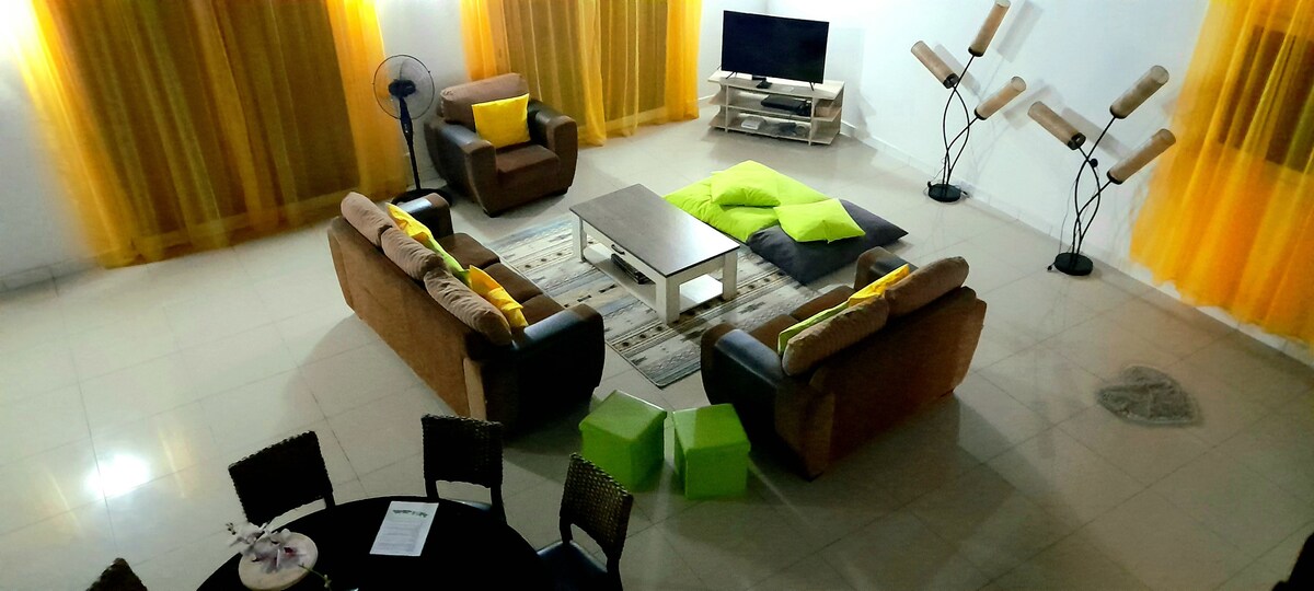 Savršena gostinjska kuća za najviše 14 osoba. (Foulpointe, Toamasina) 5 spavaćih soba (7 bračnih kreveta) sa 3 kupatila. Potpuno opremljena kuhinja (frižider, rerna, pribor za jelo). Veliki dnevni boravak sa TV-om. Mezanin. Parking mesto za 6 automobila. Sobe se mogu zasebno uplatiti. Cijene (niska sezona - januar/mart/maj/septembar/oktobar/novembar) - 200.000 ar za 5 osoba ili manje - 250.000 ar za 6-10 ljudi - 300.000 ar između 11 i 14 osoba Stope (visoka sezona - februar/april/jun/jul/avg/decembar) + 100.000 ar