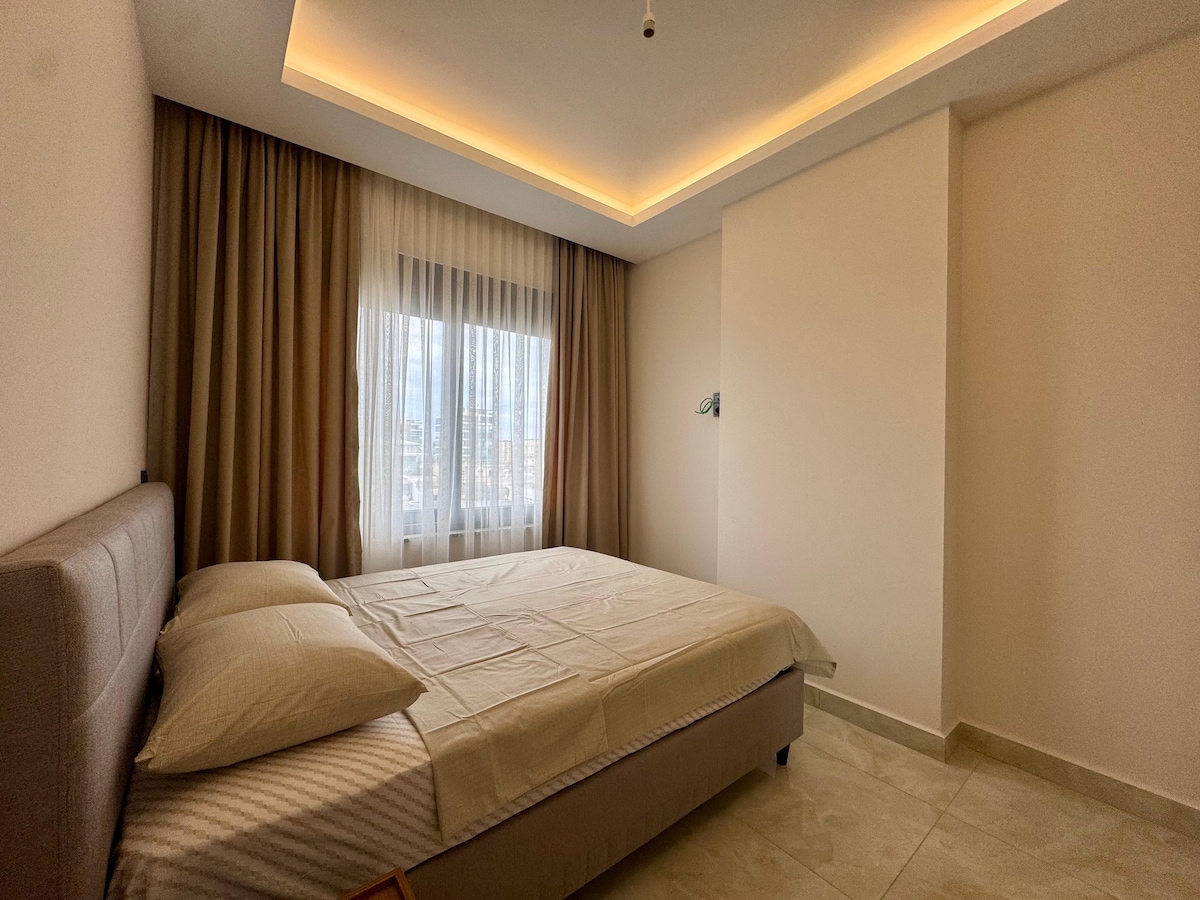 Apartman u blizini plaže Kleopatra. Stan se nalazi u srcu Alanje, na samo nekoliko koraka od poznate plaže Kleopatra. Jedna od najboljih lokacija u gradu: prelijepo šetalište uz more sa biciklističkim stazama, sportskim i dječijim igralištima, zelenim parkovima sa fontanama, akva parkom Alanja, kafićima i restoranima — sve na dohvat ruke. Savršeno za odmor, zimske boravke, rad na daljinu ili udoban život pored mora. Plaža, centar grada i živopisna atmosfera – sve je na dohvat ruke.