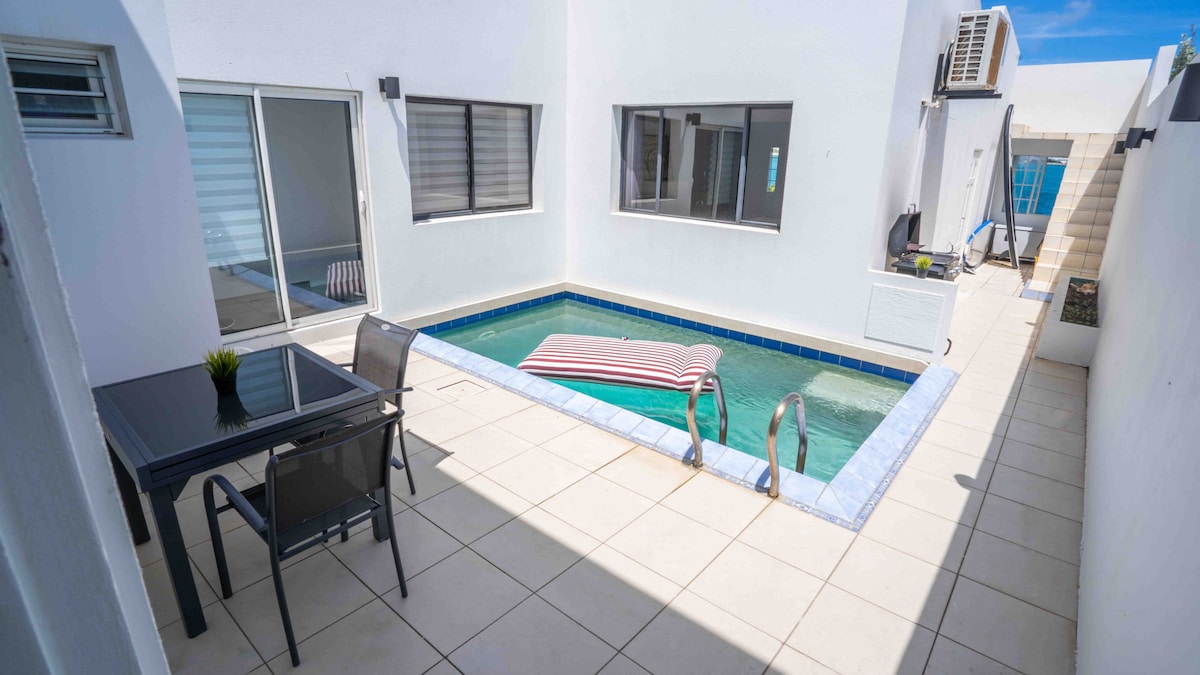 This Brand New Luxurious town house is perfectly located in the sought after area of Cupecoy. Offering a perfect blend of comfort, convenience & Caribbean charm for a memorable stay that fits perfectly to your weekend getaways, staycation, or work from home This house will bring your Caribbean dream vacation come true. It is walking distance to the Cupecoy beach and just 5 minutes drive from MulletBay & Maho Beach It has a private plunge pool and a rooftop terrace with amazing lagoon views.
