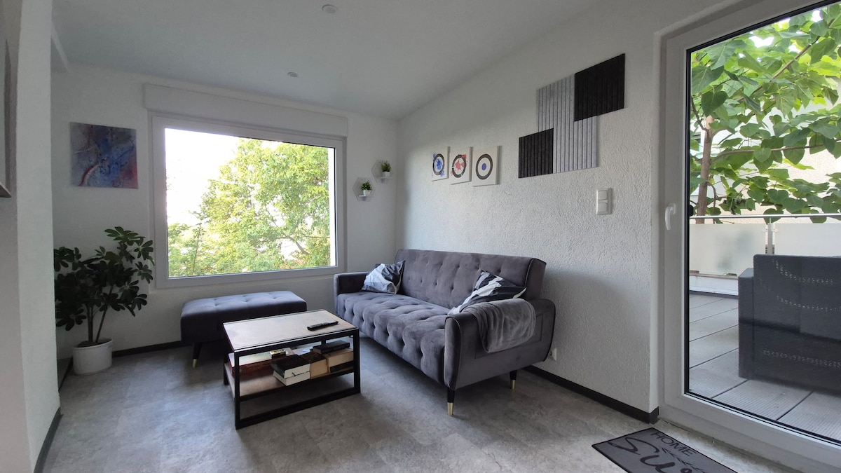 Nalazi se u centru grada, miran stan udaljen 100 metara od centra grada i 5 minuta do Rajne. Mali novouređeni stan oko 38m za, na trećem spratu sa odvojenim stepeništem za 2 do 3 osobe. Dva E i jednostruki kreveti i kauč za spavanje. Novouređen, TV, internet, Wi-Fi, potpuno opremljena kuhinja sa mašinom za pranje veša, kupatilo sa kadom, balkon.