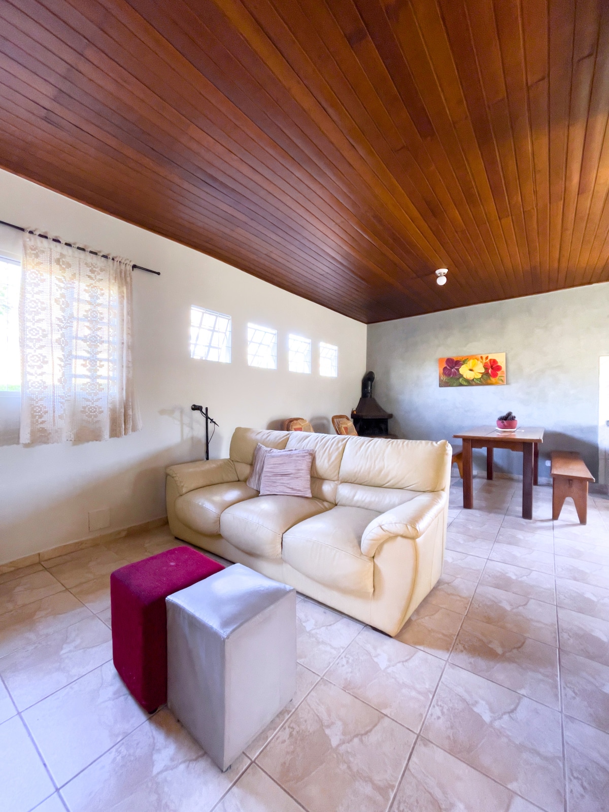 Udobna planinska kuća Lindo koja se nalazi u OGRAĐENOJ ZAJEDNICI u gradu Mairiporã/SP. 50 minuta od glavnog grada. Ima prelep pogled na krošnje drveća gde možete da čujete zvuk potoka koji prolazi kroz objekat, odvajajući se od spoljašnjeg sveta na zvuk bezbroj ptica i domaćih životinja koje posjećuju region. Za one sa četvoronožnom djecom: možete se opustiti, jer je smještaj okružen i zatvoren ogradom😊