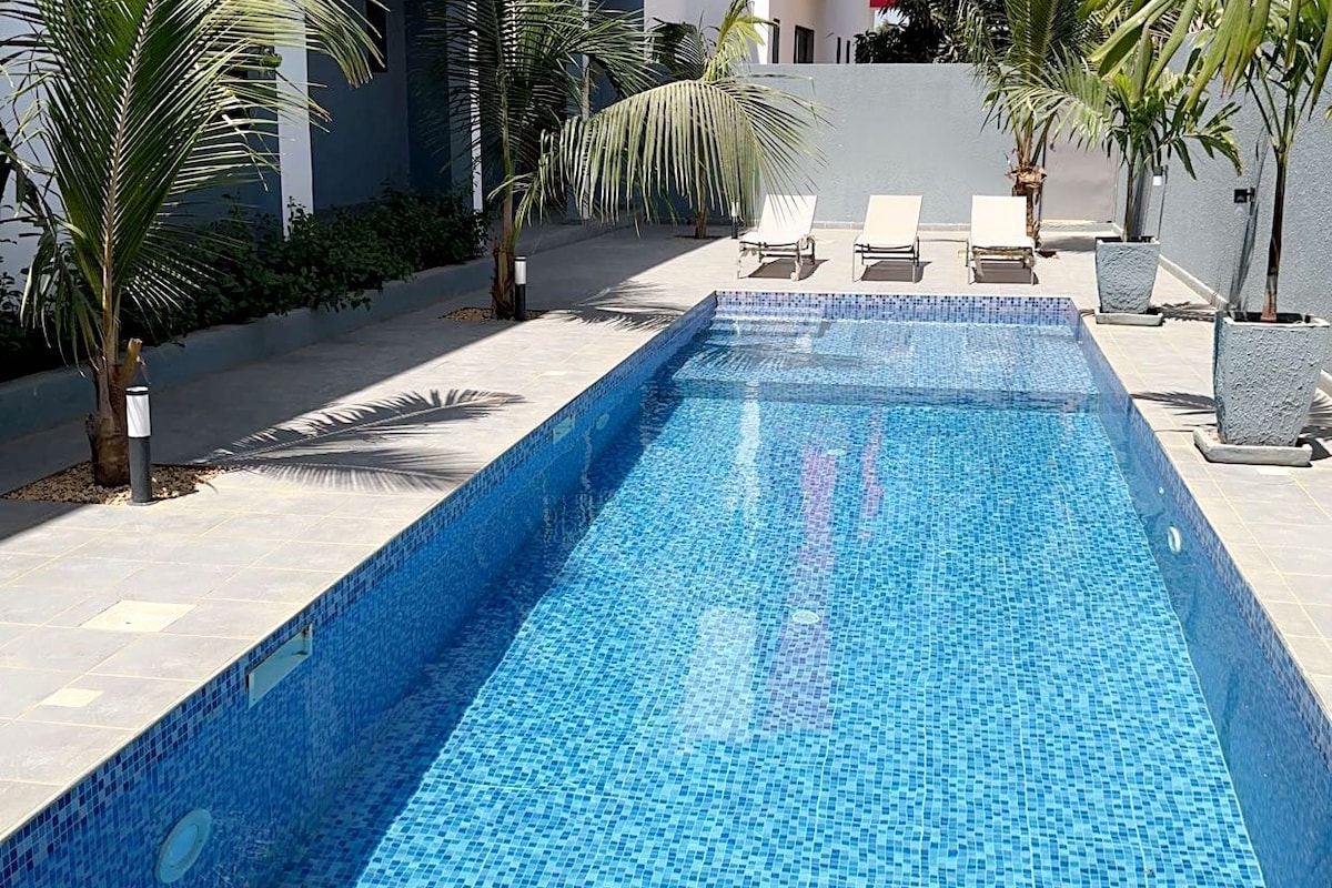 Opustite se u ovom mirnom i elegantnom prostoru. Bićete na 5 minuta hoda od najbolje plaže u Senegalu u ovom mirnom smještaju koji se nalazi u centru grada. Novouređeni, svi novi kućni aparati i instalacije, ovaj stan je udoban i praktičan. Bićete u zaštićenom kompleksu sa restoranom u sklopu objekta. Struja i Wi-Fi su uključeni u cijenu iznajmljivanja. Kajaci, skuteri i ležaljke za plažu se iznajmljuju na svega nekoliko minuta.